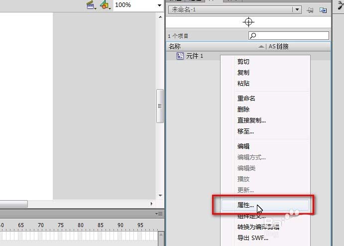 10、在庫(kù)中找到剛才的元件右擊選擇屬性。