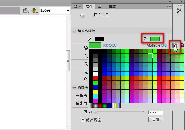 5、將橢圓工具畫出來(lái)的圓內(nèi)填充設(shè)為空白。