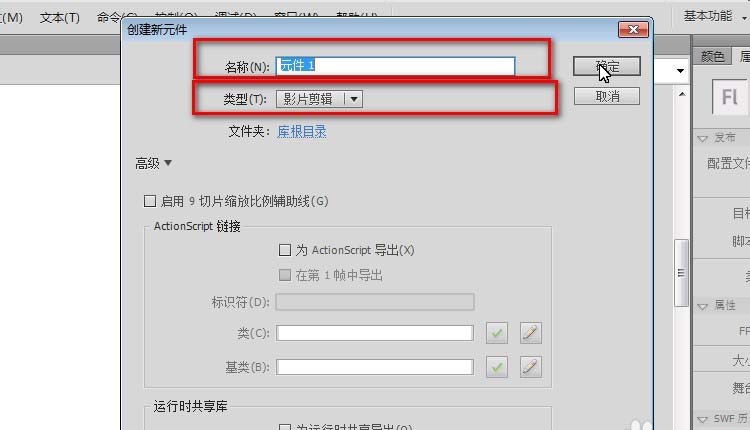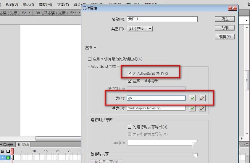 11、打開(kāi)actionscript導(dǎo)出,并為元件添加一個(gè)類名。