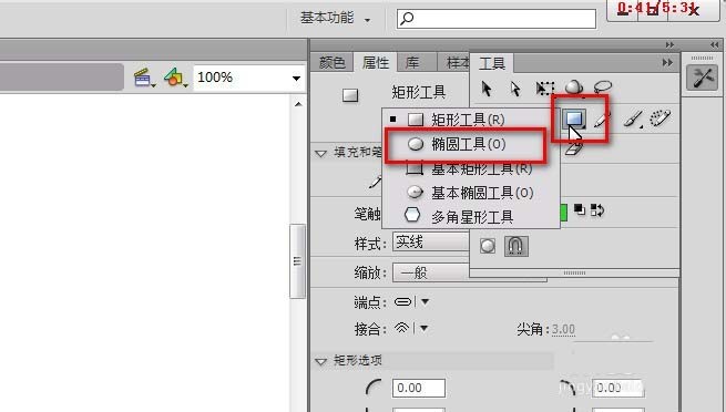 4、在工具欄中長(zhǎng)按矩形框后選擇橢圓工具。