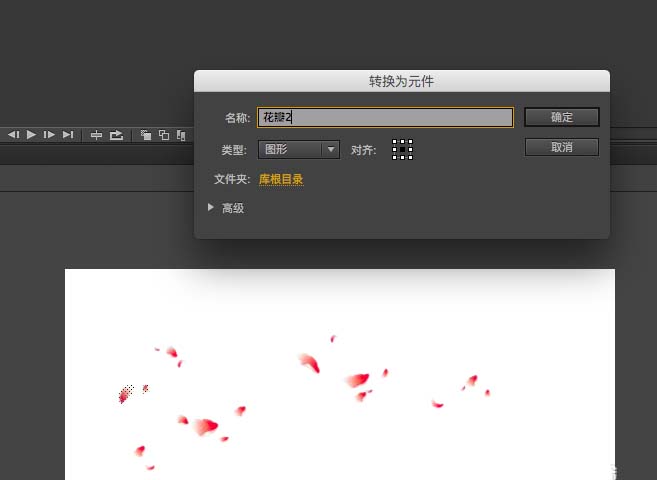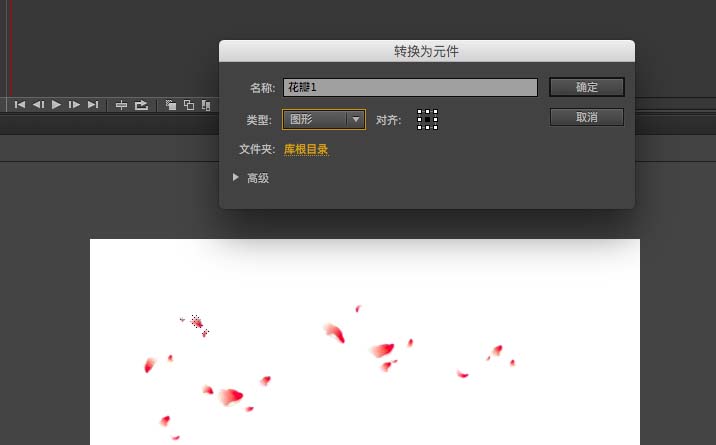 5、然后選中一些花瓣,最好細(xì)小一點,這樣之后制作會更真實,按F8,轉(zhuǎn)化為圖形元件,命名為花瓣1