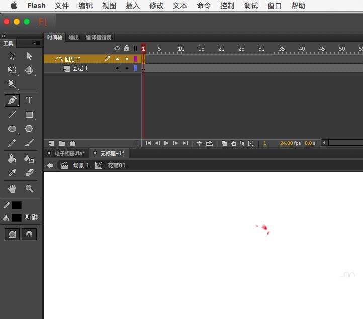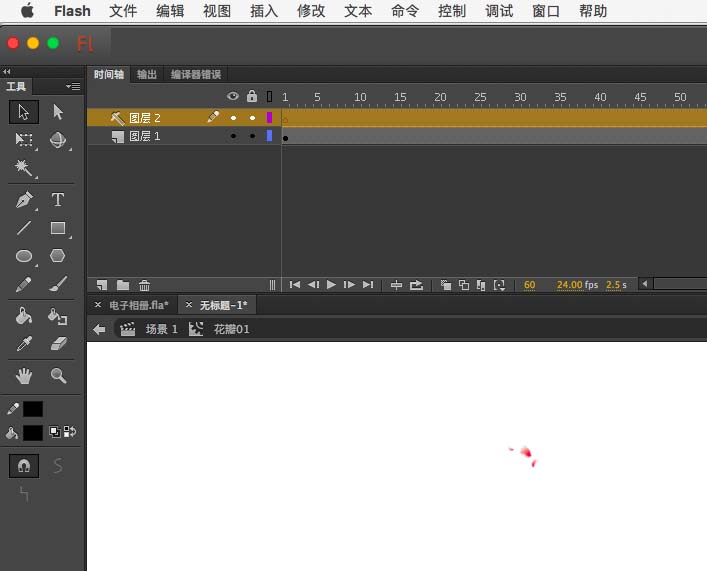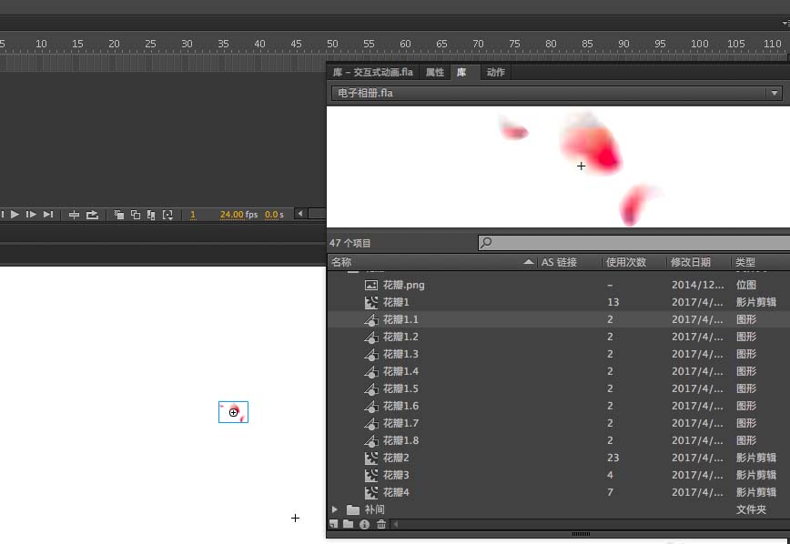 2、然后我們需要制做的其實就是花瓣的部分,需要有一張花瓣的圖,大家可以在網(wǎng)上找或者自己有也可以,拖進(jìn)舞臺中
