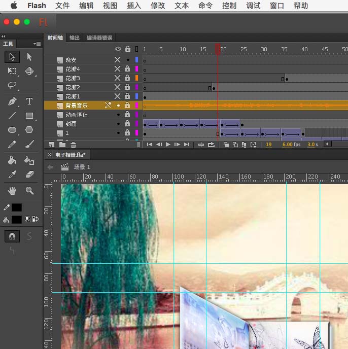 1、首先我們看一下之前做到哪一步了,也就是把背景歌曲弄好了,上面的圖層大家先熟悉下,可以按照這個建