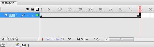 2、在圖層1的第50幀處,插入關鍵幀。如下圖所示: