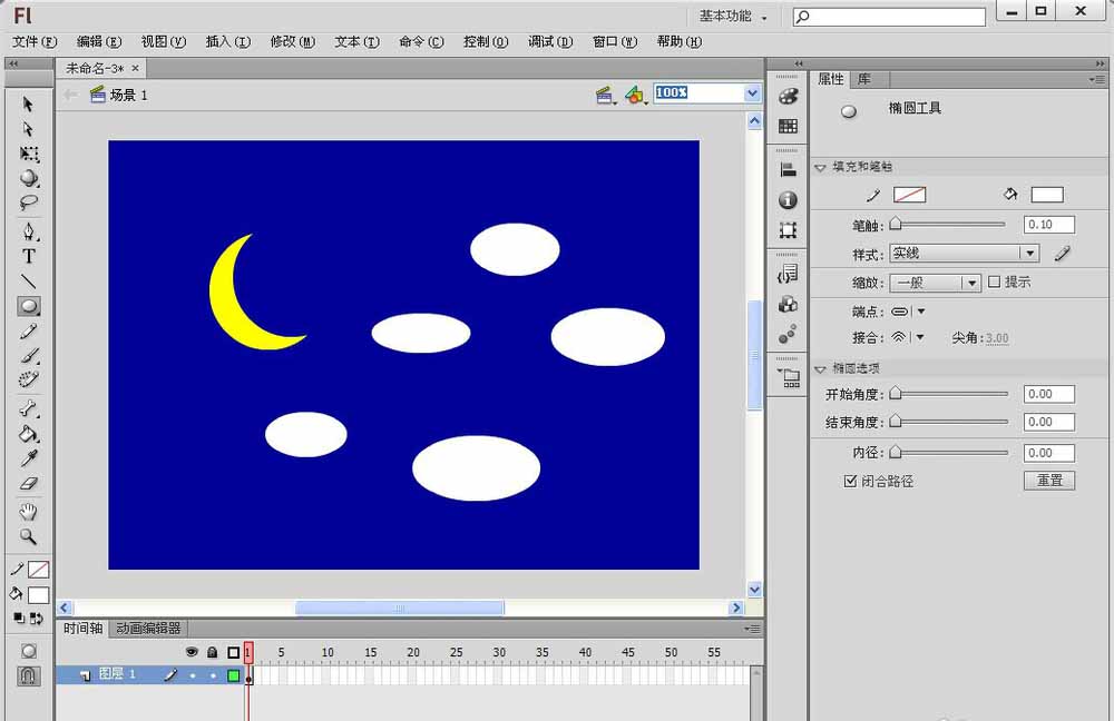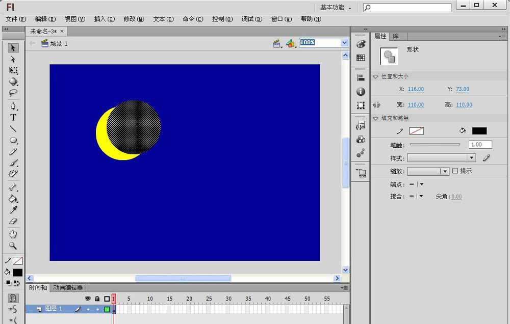 flash cs6怎么畫月亮? flash使用矩形工具繪制月亮的兩種方法