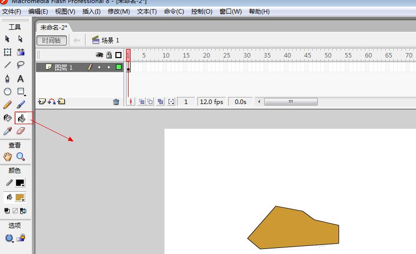 3、選擇石頭的固有色,點擊顏料桶工具,填充顏色。