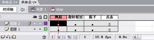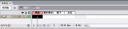 3、把元件拖到場景中,雙擊進入內部。在彈起,指針經過,按下這里分別添加關鍵幀,點擊這里添加幀。