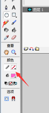 4、選擇圓工具,筆觸關閉;圖層1中繪制一個圓;