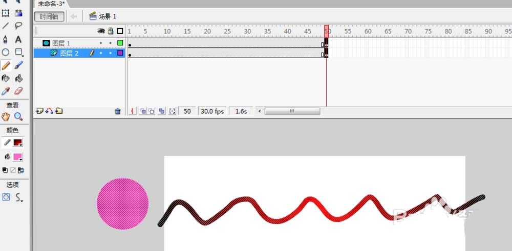 8、調整第1幀以及第50幀的圖層1中圓的位置;