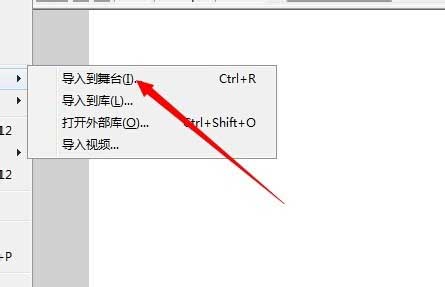 5、打開【導入】之后這里還有很多的選擇項,我們選擇【導入到舞臺】