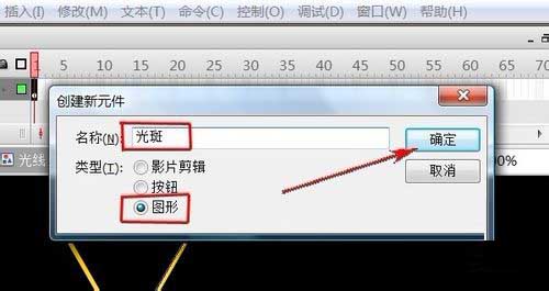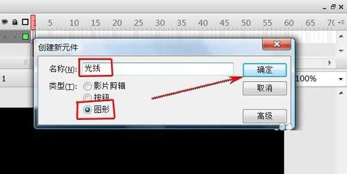 2、“Ctrl+F8”新建一元件,名稱為“光線”,類型為“圖形”。