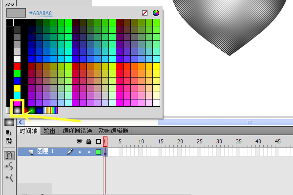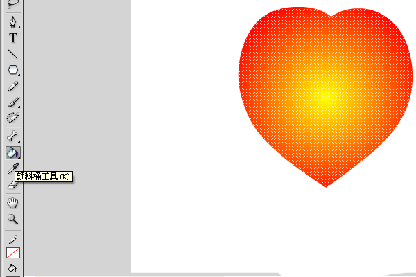 7、調好后,選中舞臺上的桃心,將其改為徑向漸變。
