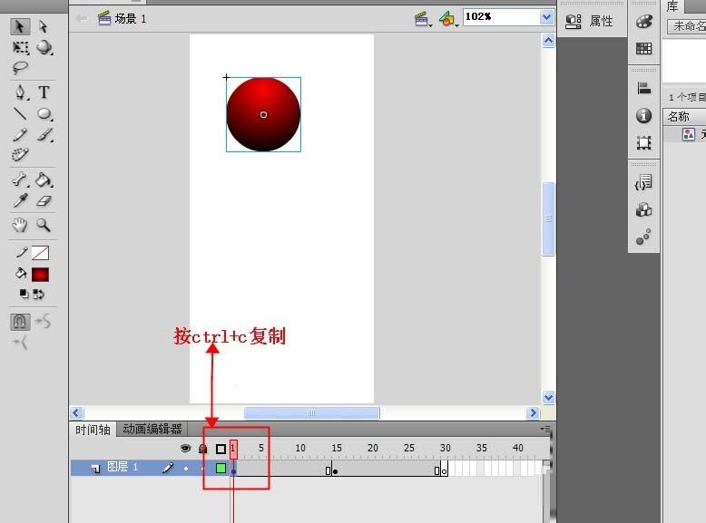 5、選擇30幀(可以自己選擇)按F7(插入空白幀),選擇第一幀,按ctrl+c復制,在選擇30幀,按ctrl+shift+v(原位置粘貼)