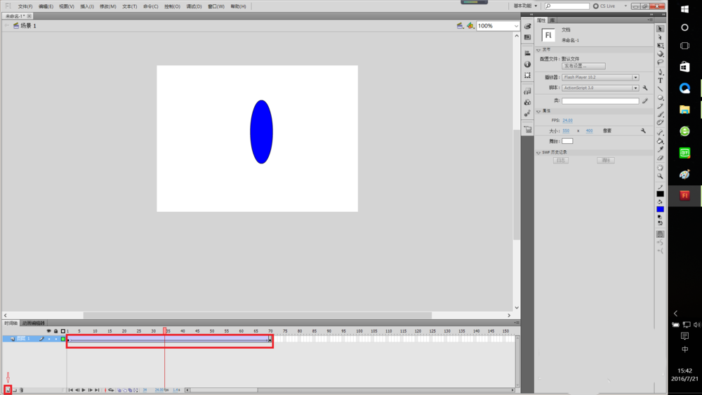 4、在最后一幀上,將元件拖曳到你所要的位置上