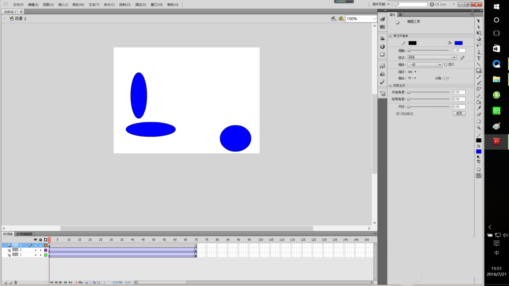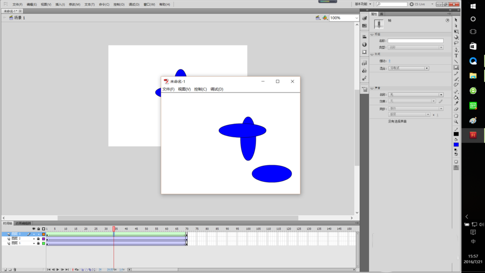 7、第二圖層,我也是制作一個傳統補間動畫,所以步驟對應前面的1~6個步驟,而第三個圖層,我要做的是個形狀補間動畫