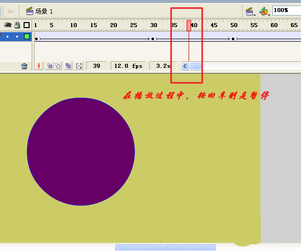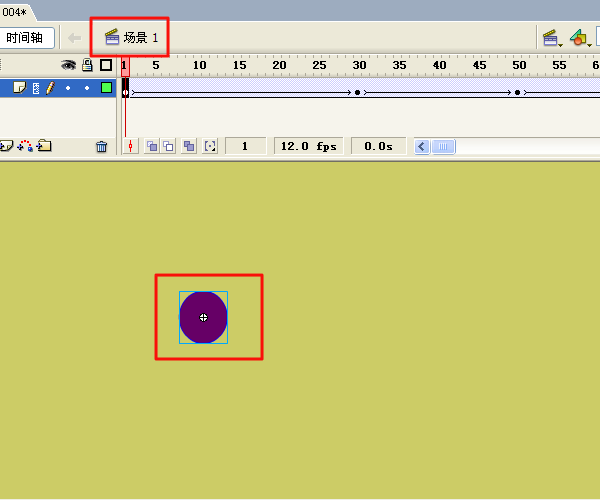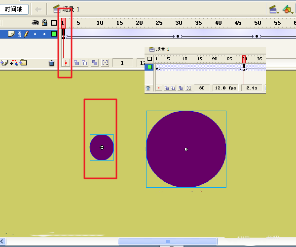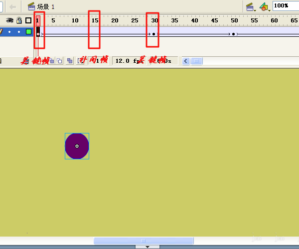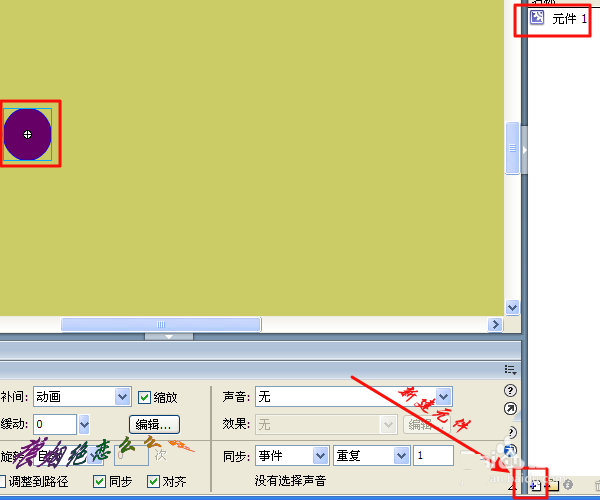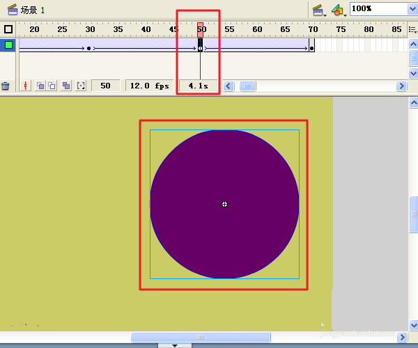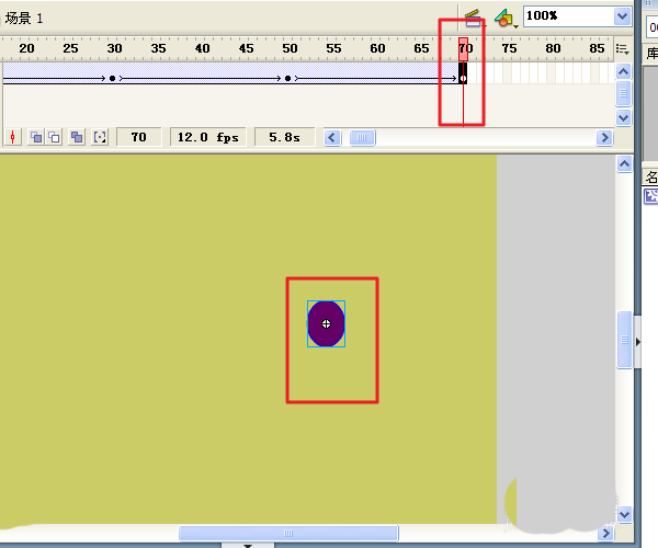 1、新建一個元件,在元件上畫一個圓,填充為紫色。