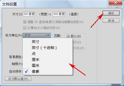 5、在文檔設(shè)置窗口,從“ 標(biāo)尺單位” 菜單中選擇一個單位。
