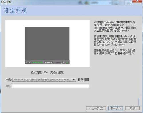 13、 設定播放器外觀。又彈出設定外觀窗口。繼續采用默認的設置。就點窗口下邊的“下一步”按鈕。出現“完成視頻導入”窗口后,再點“完成”按鈕。