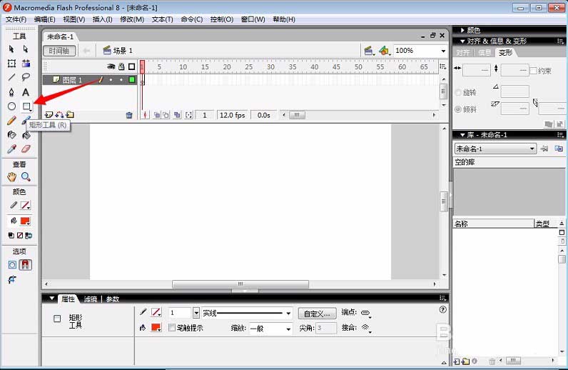 1、打開flash程序,界面如圖所示,我這里用的是flash8,其它版本界面會有所不同。