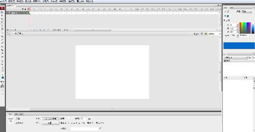 7、選擇“圖層1”第1幀,使用“矩形工具”在頁面上繪制一個矩形,用“顏料桶工具”為繪制的矩形填充漸變色。