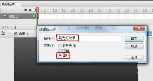11、名稱為“聚光燈效果”,類型設為“圖形”