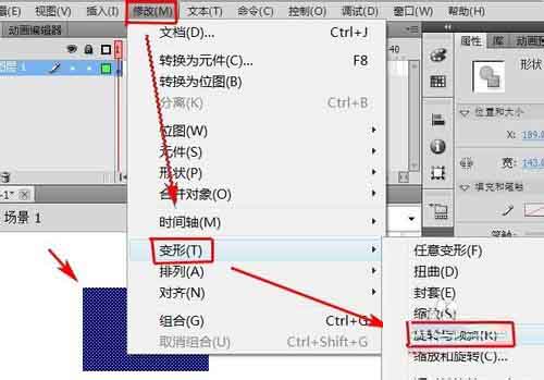 4、選擇中“矩形”,在菜單欄中單擊“修改”,在彈出的下拉菜單中選擇“變形”—“旋轉(zhuǎn)與傾斜”。