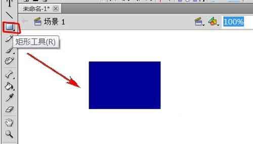 3、在工具欄里選擇“矩形工具”,利用“矩形工具”在舞臺(tái)上繪制一個(gè)矩形。