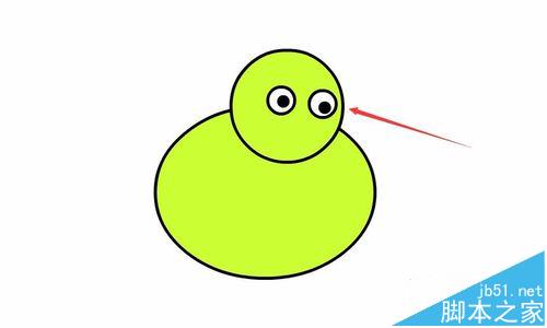 6、按下鍵盤(pán)上的shift鍵,繪制一個(gè)圓形作為小雞的眼睛,如圖所示: