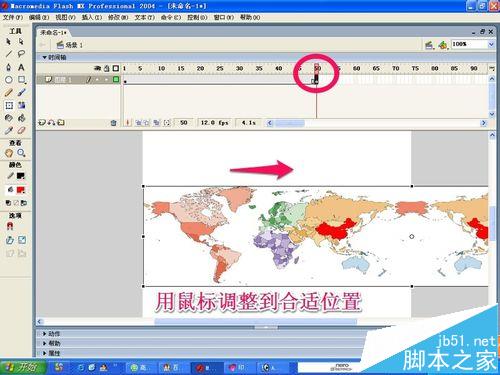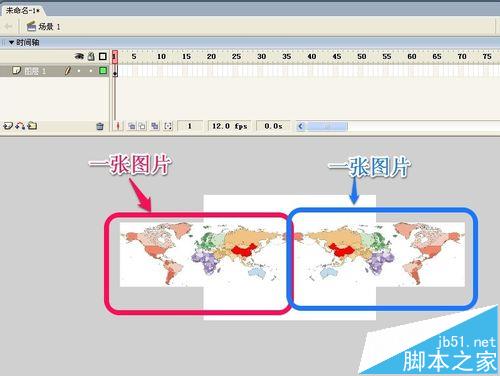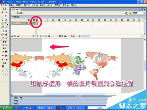 8、把第一幀中的圖片用鼠標向左拖動調整到合適的位置!