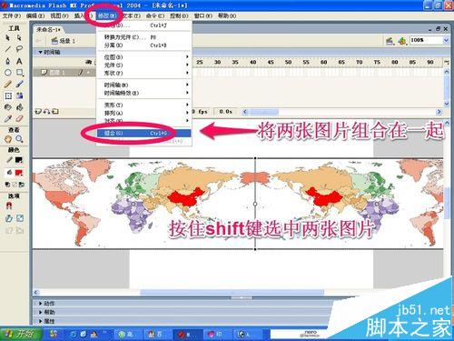 7、我們選中兩張圖片,點擊修改菜單,然后將兩張圖片組合為一個整體!