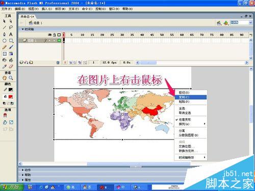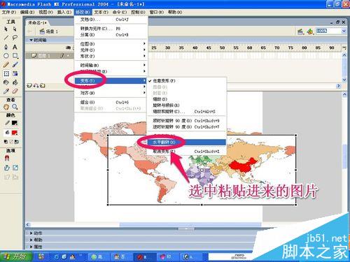 5、我們選中其中的一個世界地圖圖片,如圖將圖片進行水平翻轉!這樣的目的是讓我們的世界地圖更長一點,動畫效果更美觀一些!