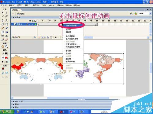 10、然后我們在兩個幀之間右擊鼠標,創建補間動畫!