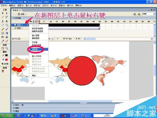 13、現在是制作遮罩動畫最關鍵的一步,大家仔細看!在新建的圖層(也就是圓形這一層)上單擊鼠標右鍵,選擇遮罩!