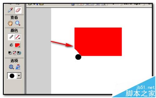 8、接著點下選項第二個;水龍頭。點了“水龍頭”后,光標(biāo)呈一個水龍頭形狀,然后,在圖形上點下,圖形的顏色即消失;可以看到,“水龍頭”只把圖形內(nèi)里的顏色“沖走”;邊框是沖不走的;如果圖形是沒有邊框的,“水龍頭”一點,直接把整個圖形沖消失了。