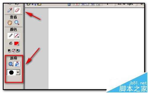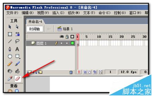 1、雙擊flash圖標(biāo),打開操作界面;在界面的左邊是工具箱;橡皮擦的圖標(biāo)是一塊粉紅色的橡皮擦圖形,如下圖所示;