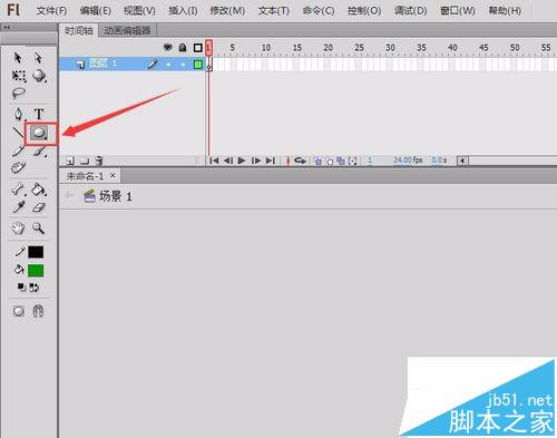 2、在這個界面的左側找到工具箱,在工具箱里找到橢圓工具,如圖所示: