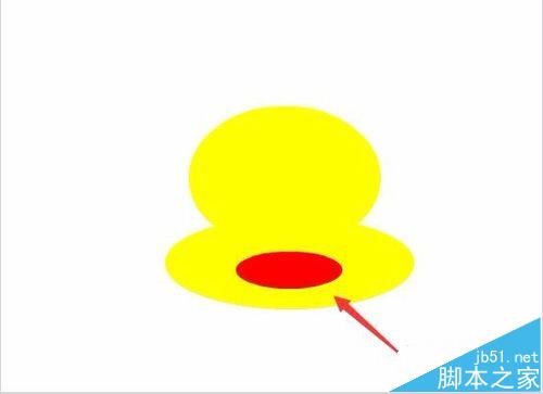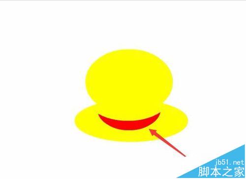 8、點擊選擇工具將剛剛繪制的紅色橢圓調節其形狀,將其作為嘴巴,如圖所示: