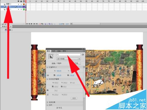 5、在屬性面板中修改該元件的實例名稱為“niu”,點擊新建圖層按鈕新建圖層3.
