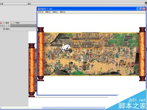 2、執行文件-導入-導入到舞臺命令,把事先準備好的一張圖片導入到舞臺上,并設置其大小為800*400,設置全居中(水平中齊、垂直中齊)。