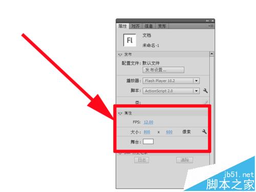 1、啟動flash cs5,執行文件-新建命令,新建一個大小為800*600,幀頻為12fps,背景顏色為白色的文檔。