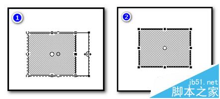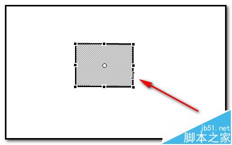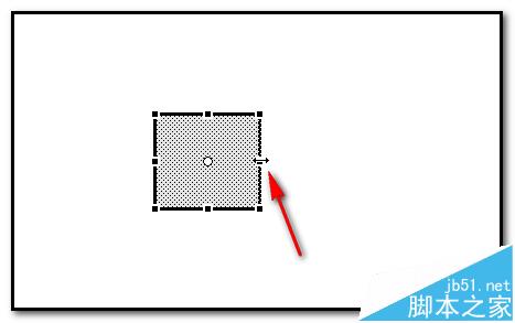 3、放開鼠標,方形即呈選中狀態,方形四周顯8個黑色小方框,這是控制點;中間顯一個空心小圓,這是方形的中心點;然后,光標放在其中一個小黑方框上;光標變成雙箭頭的形狀;