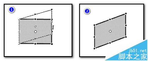 6、這時,點住光標,上下拖拉,可以把方形上下調成傾斜形狀,而方形另一端是不動的。如圖中所示;