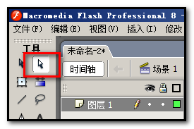 1、文檔中已畫有一條豎直線;flash8文檔中,左側的工具箱,第二個圖標就是“部分選取”工具;