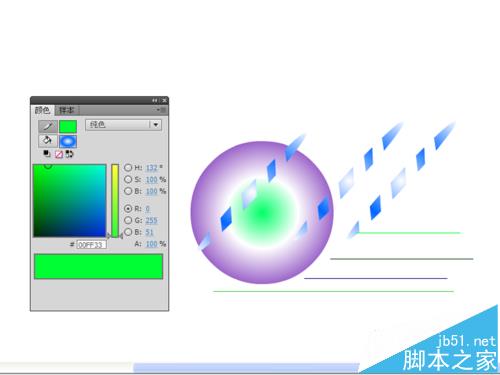 2、選擇工具箱里橢圓工具,設置筆觸顏色為無,填充顏色設置彩帶形式,類型為徑向漸變。