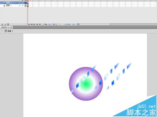4、在時間軸上點擊新建圖層按鈕,新建圖層2,選擇工具箱里橢圓工具將填充顏色設置為#0066ff,在舞臺上繪制一個橢圓。