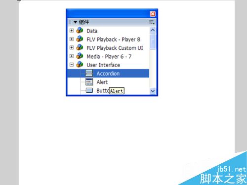 4、執(zhí)行窗口-組件命令,在彈出的組件對話框中找到user interface中的accordion拖拽到主界面上。