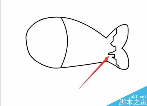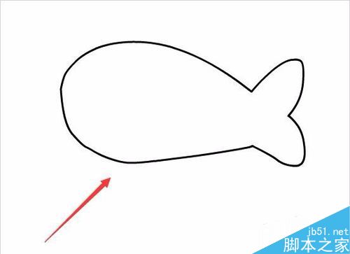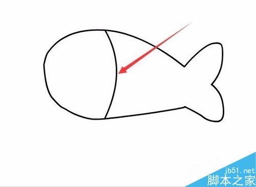 5、點擊直線工具,在與的身體上繪制一條直線,作為魚頭和身體的分界線,并調節其形狀,如圖所示: