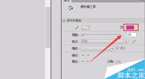 9、再次選擇油漆桶在屬性里調節填充色為粉紅色,給魚的身體填充上粉紅色,如圖所示: