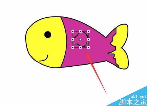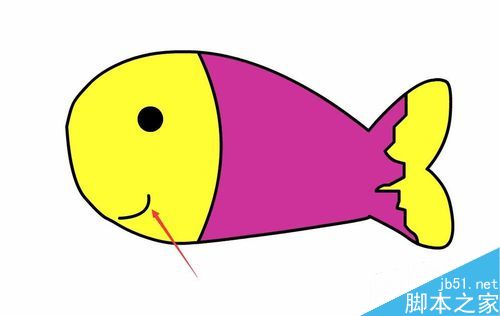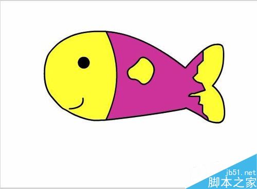 16、用油漆桶給魚鰭填充上黃色,我們的卡通小魚就制作完成了,如圖所示: