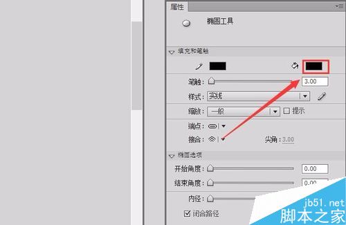 10、在工具箱內選擇橢圓,并設置橢圓的填充色為黑色,如圖所示: